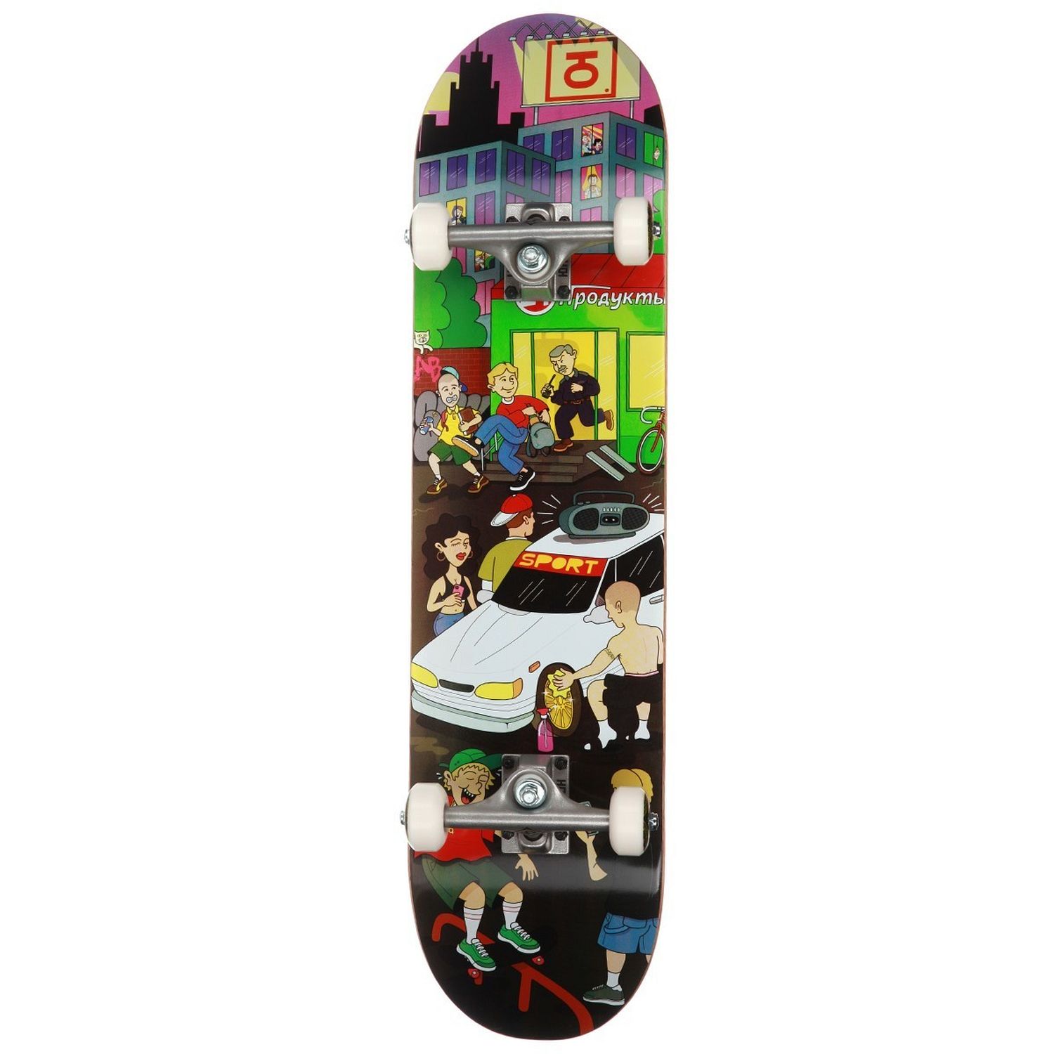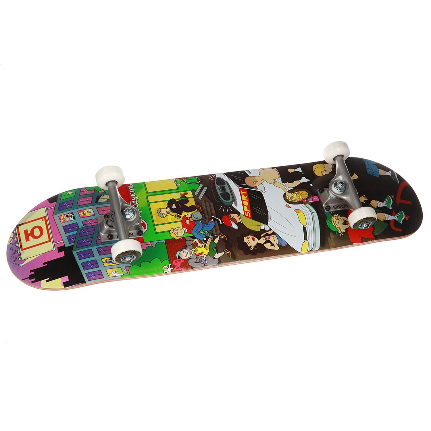 Юнион Megapolis - прочный скейтборд, который хорошо подойдет как новичкам, так и опытным райдерам. Дека изготовлена из канадского клена. В производстве доски применяется технология холодного пресса, которая позволяет сделать ее прочной и надежной. Скейтборд имеет колеса размера 51мм жесткостью 100А с качественными подшипниками ABEC7.