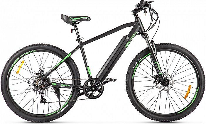 Велогибрид оборудован 7-скоростным приводом с переключателем Shimano Tourney, а также внедорожными покрышками Kenda с агрессивным протектором. Велосипед оснащен передней пружинно-эластомерной вилкой с функцией блокировки, которая смягчает неровности на дороге, и дисковой механической тормозной системой, которая позволяет эффективно и быстро остановиться как только это потребуется. Максимальная грузоподъемность модели составляет 110 кг.