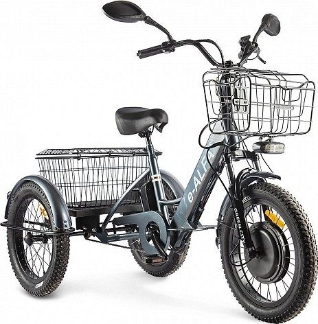 Электромотор прямого привода мощностью 500 Ватт расположен на переднем колесе и позволяет разгоняться до 25-30 км/ч. Литий-ионная аккумуляторная батарея (48V 10Ah) внутри рамы позволяет преодолевать расстояния до 40 км на одном заряде. Прочная стальная рама велотрицикла оснащена передней амортизационной вилкой, чтобы сделать езду по неровностям мягче и приятнее.