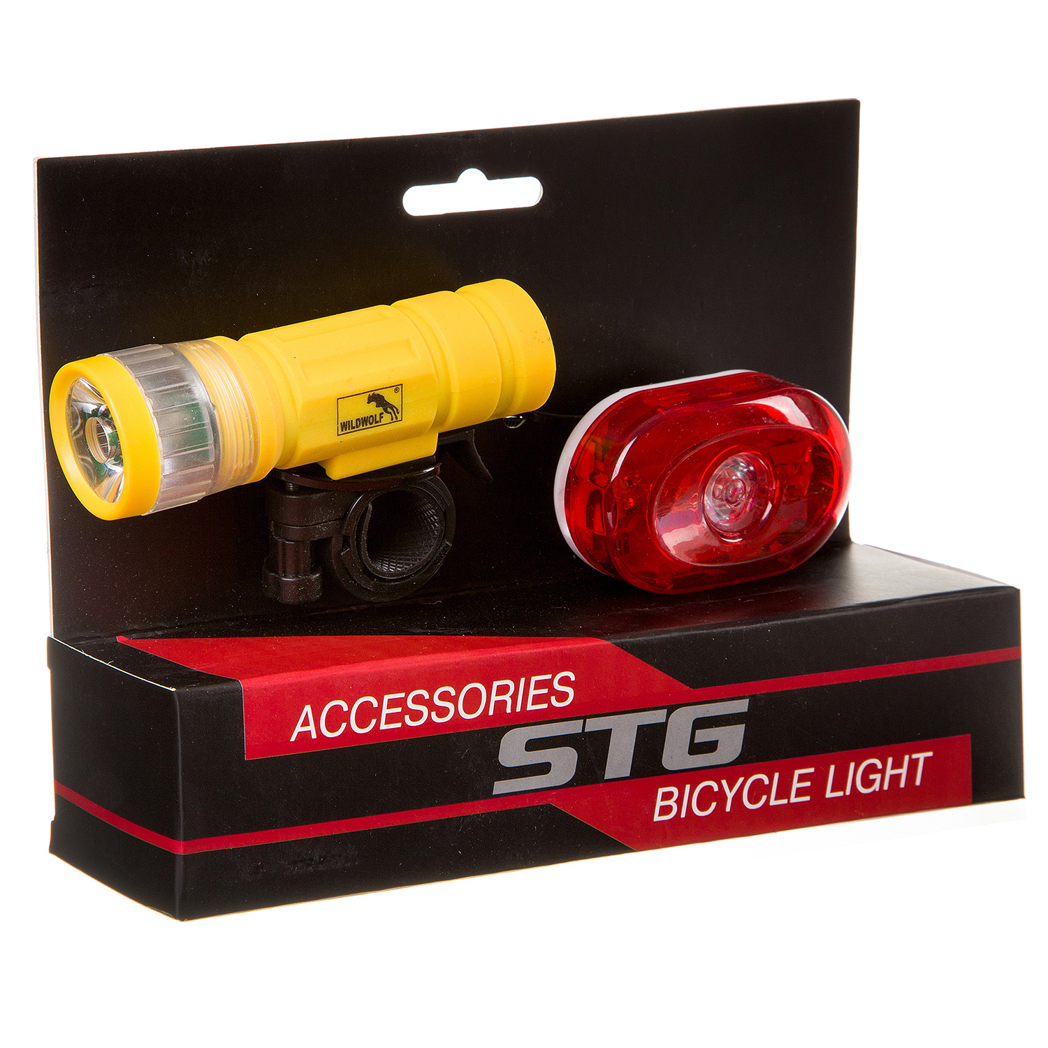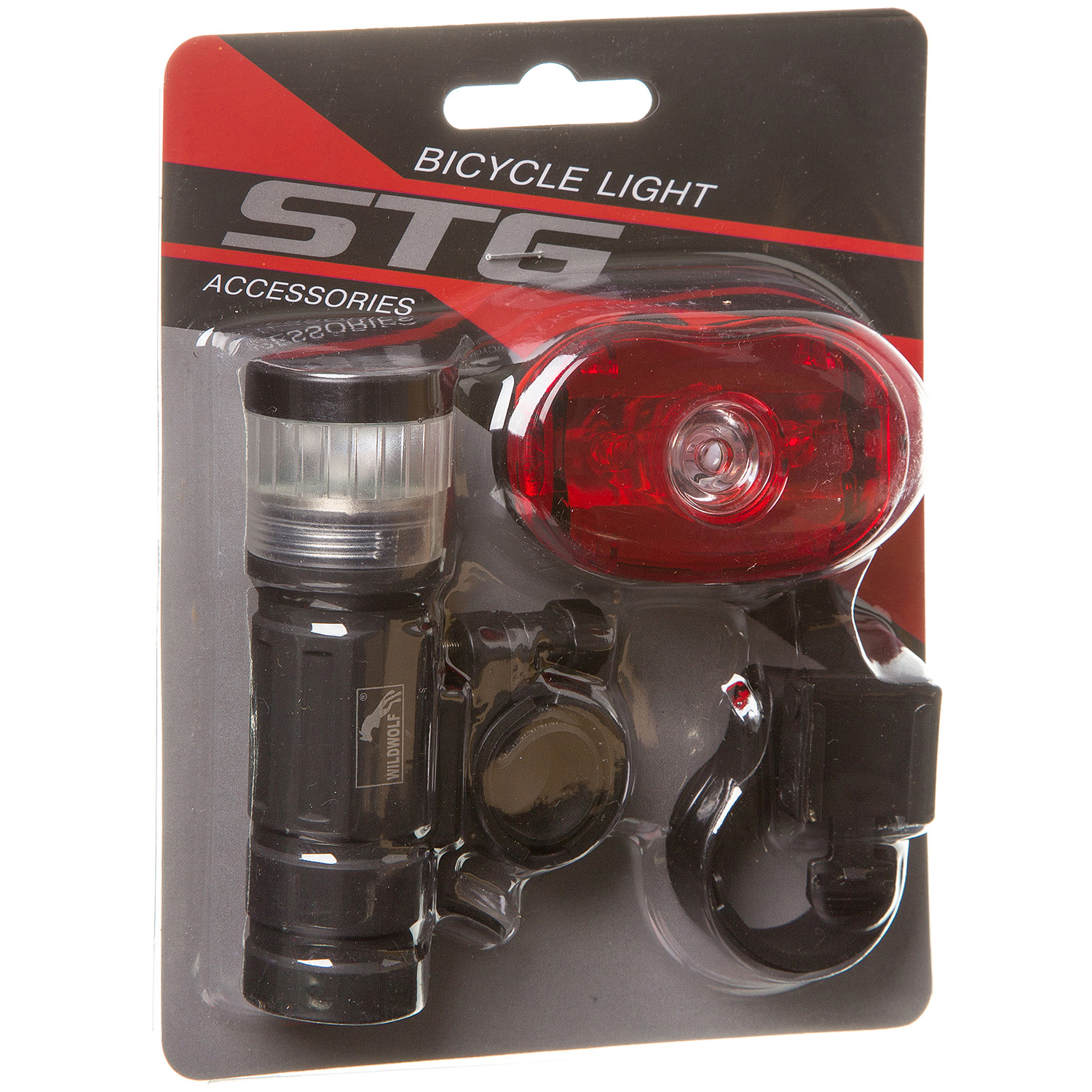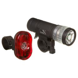Комплект фонарей. STG TL1524 передний 1 белый диод на 1 ватт. Батарейка типа - 3ААА в комплект не входит. Задний фонарь STG TL5361, 5 красных диодов с линзой. Батарейка типа - 2ААА в комплект не в входит