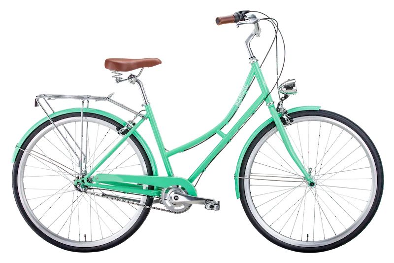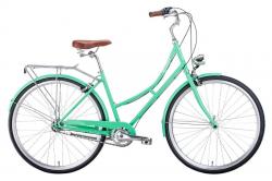 В основе велосипеда – прочная стальная рама, которая обеспечивает жесткость конструкции. Низкое расположение седла относительно руля позволяет управлять байком без лишних усилий и особых навыков. Ездить на таком велосипеде можно длительное время, руки и спина при этом уставать не будут. Колеса – типичные для этого класса – диаметром 28 дюймов. Они обеспечивают достаточно плавную езду и позволяют вполне динамично набирать скорость. В основе трансмиссии – планетарная втулка, которая может включать одну из трех передач, чего с головой хватает в городском байке. Внешний вид велосипеда приятный и сдержанный. Мятный оттенок зеленой рамы подчеркивает спокойный характер байка. Седло и грипсы выполнены из стильной искусственной кожи коричневого цвета.