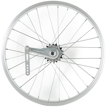 Колесо 18" заднее в сборе(без резины) с одинарным алюминиевым ободом на 28 спиц со втулкой под гайку.