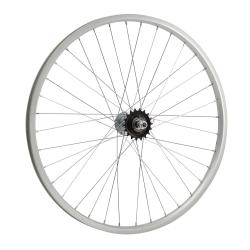 Колесо 24" заднее в сборе(без резины) с одинарным алюминиевым ободом на 36 спиц со втулкой под гайку.
