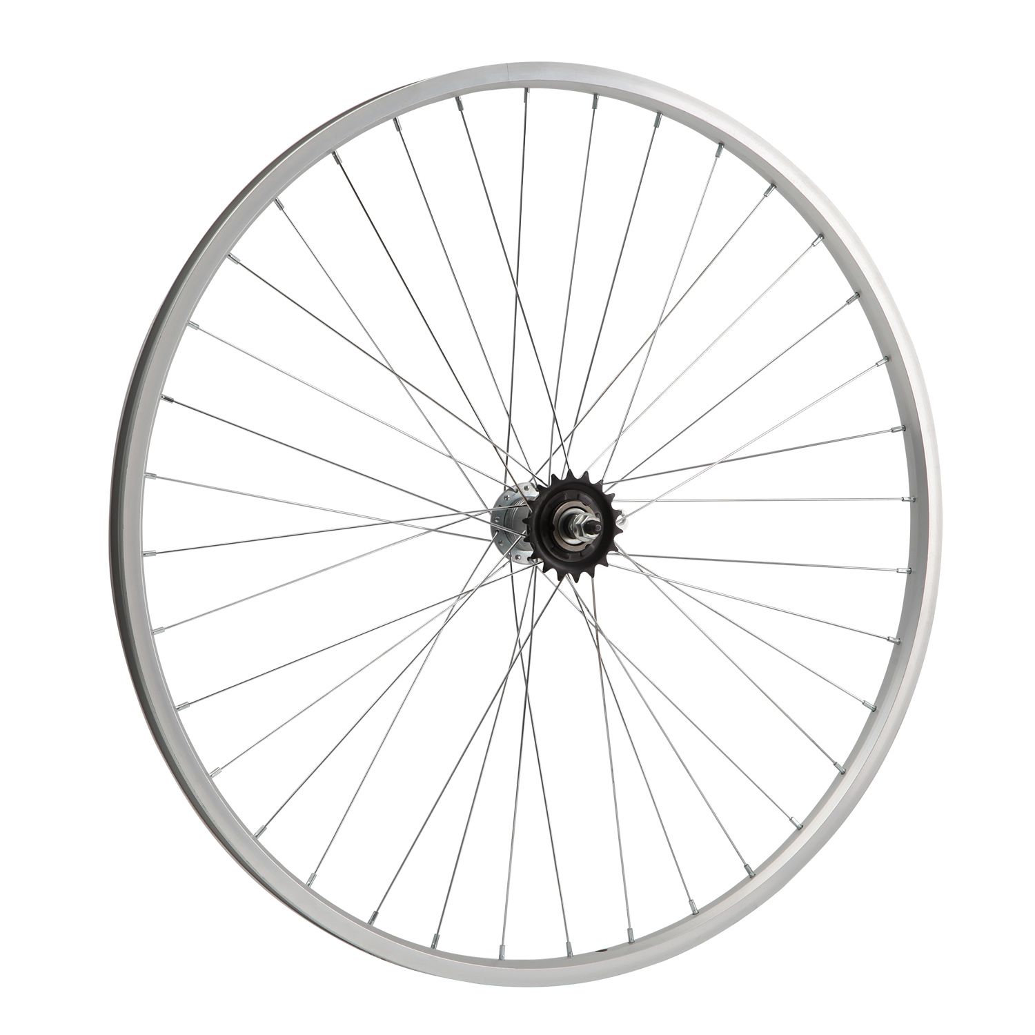 Колесо 26" заднее в сборе(без резины) с одинарным алюминиевым ободом на 36 спиц со втулкой под гайку.