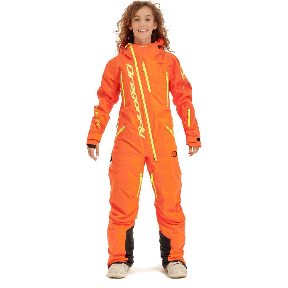 Комбинезон выделяется современным дизайном и элегантными линиями, а также гармоничными женственными цветами – оранжевым и жёлтым. Он не только защищает от холода, но и позволяет выглядеть стильно на склоне. Комфортная посадка обеспечивает свободу движений, что особенно важно при выполнении трюков и спусках.