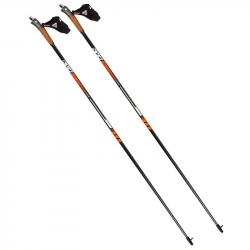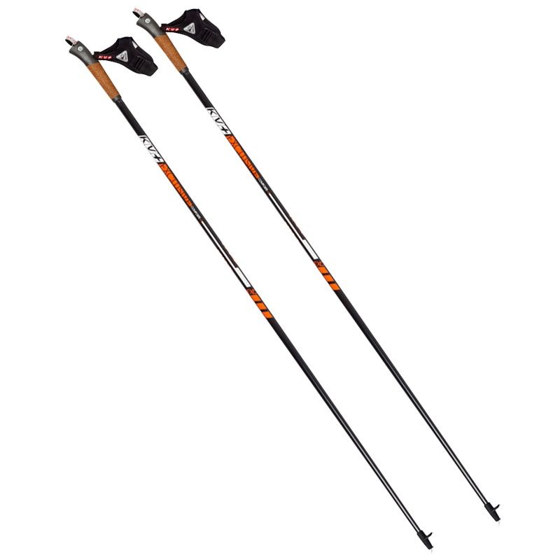 KV EXCLUSIVE - цельные нерегулируемые палки из карбона, длинна 125 см. В комплекте идут наконечники для ходьбы по асфальту или плитке. Система Clip позволяет закрепить темляк одним щелчком.