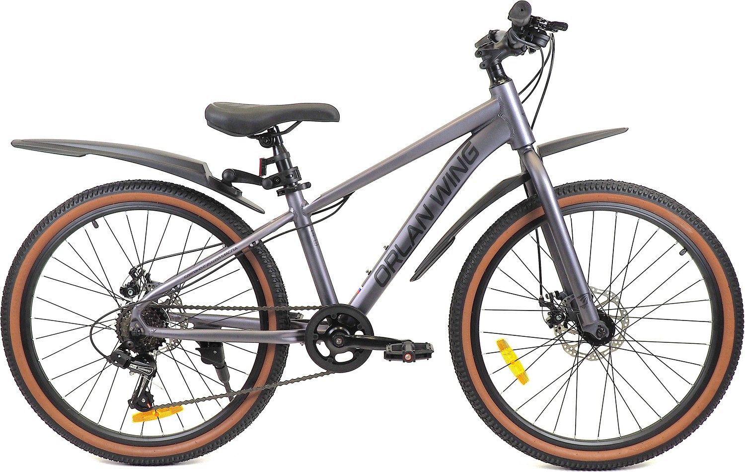 – Покрышки Compass 24"х2.125. Чёрная основа с коричневой полосой придаёт велосипеду стильный вид.