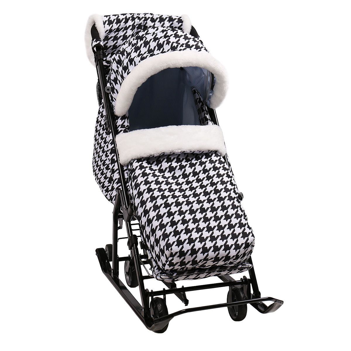 Cанки-коляска Ника Детям 7-5 - в новом цветочном дизайне с обновленным чехлом. У модели новый крой чехла для ног с круговой молнией и окантовкой мехом. Механизм смены полозьев на колеса позволит удобно перекатить коляску по асфальту.
