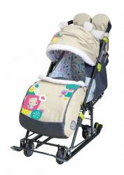 Санки-коляска Nika с трансформируемым кузовом позволяет передвигаться по любой дороге. Нажатием ноги на педаль опускаются колеса, и вы можете везти коляску по асфальту или по гладкому полу. Еще одно нажатие — коляска трансформируется в санки и снова скользить по снегу!