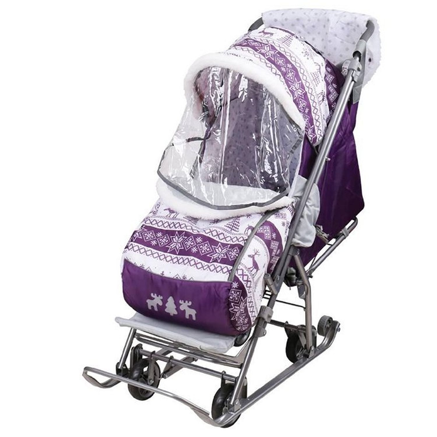Удобные и практичные санки-коляска - незаменимый помощник мамы и малыша. Теплый чехол на ножки и складной капюшон надежно защитят от ветра, снега и мороза. В таких санках ребенку будет тепло и уютно. Санки удобны тем, что, помимо классических полозьев для езды по снегу, имеются выдвижные колеса, которыми можно воспользоваться на асфальтированных участках дороги, а также для посещения магазина. Такие санки очень удобны в эксплуатации. Удобный механизм качания сглаживает движение коляски по неровностям. Тканевый чехол с утеплителем обладает прекрасными гигроскопическими свойствами. Спинка регулируется, так что малыш сможет с комфортом поспать во время прогулки. Также имеется муфта для мамы, чтобы возить санки было не холодно. Санки оснащены и сумкой для перевозки различных вещей малыша. Она крепится на ручку.