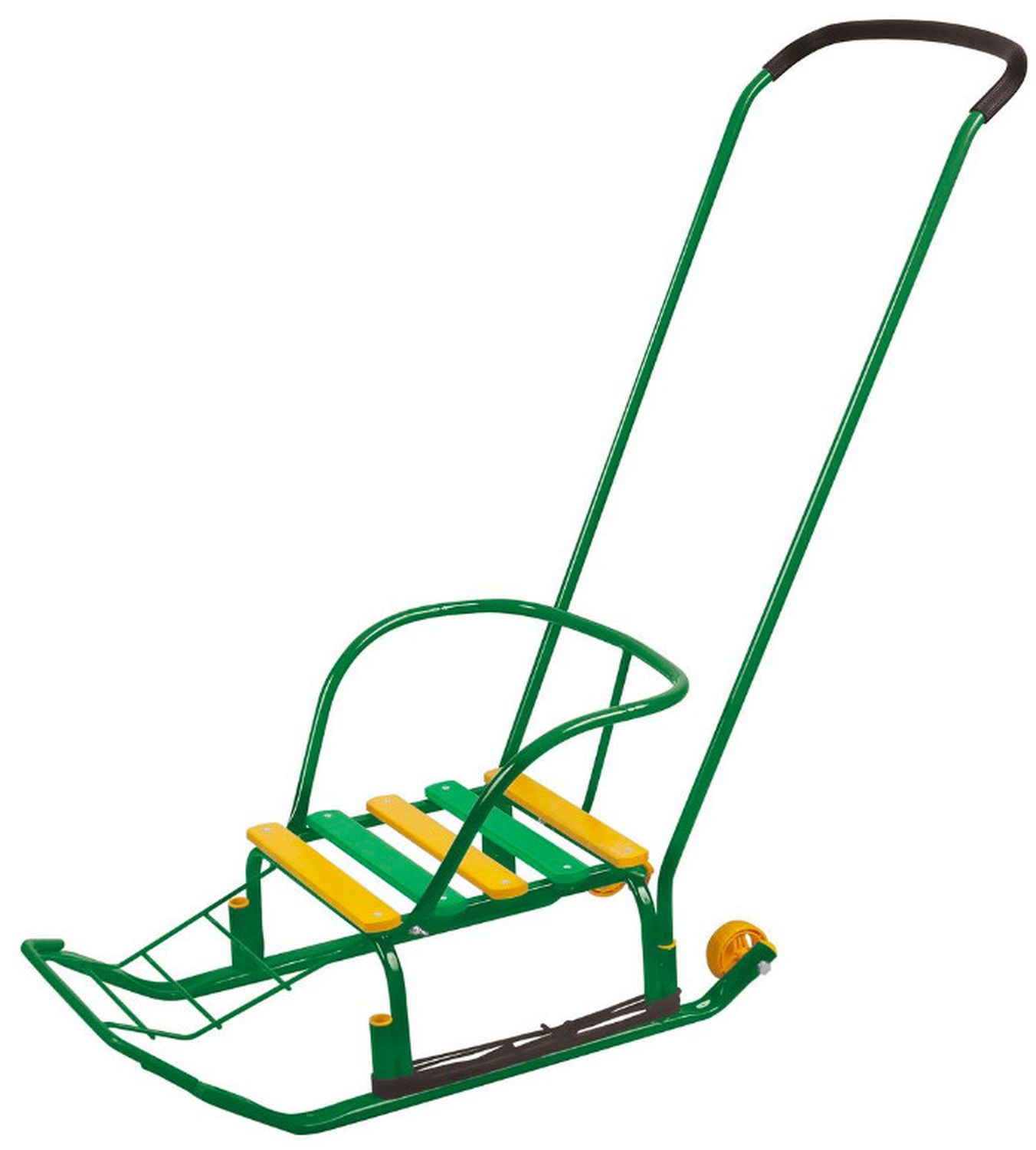Функциональные и практичные санки от российского производителя придутся по душе любому малышу. Они имеют прочный металлический каркас, удобную спинку и сиденье из деревянных реек. Впереди имеется подставка для ног. Санки можно доукомплектовать мягким сиденьем. Также санки комплектуются веревкой, чтобы возить за собой. Компактные размеры позволяют хранить их даже в небольшом шкафу. Родительская ручка удобна в использовании. Ремень безопасности надежно зафиксирует малыша.