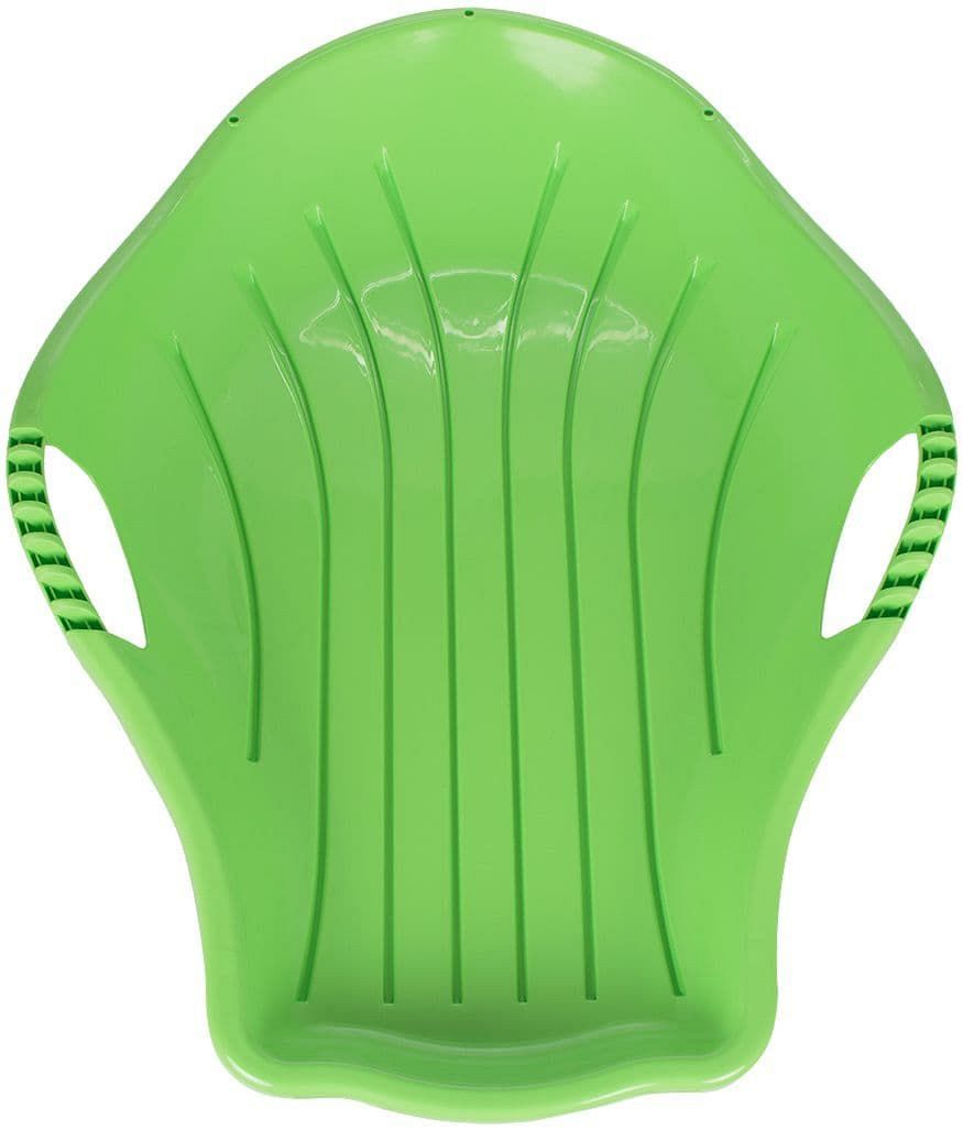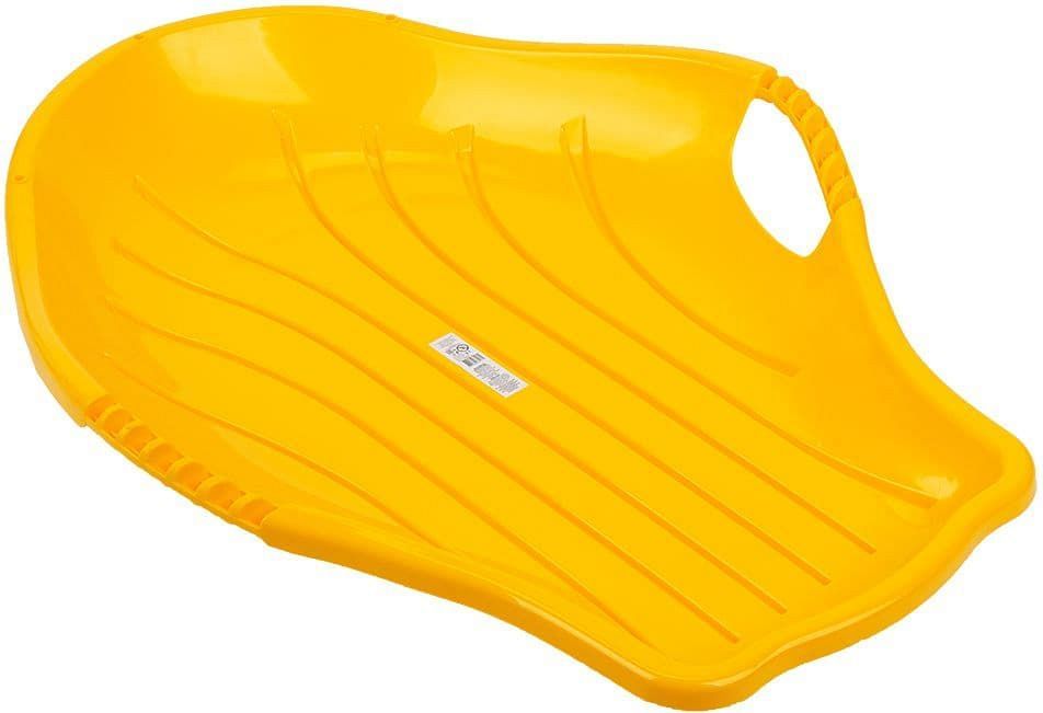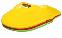 Санки с ручками выполнены из морозостойкого и прочного пластика. Отсутствие острых углов, широкое днище и удобные ручки сделают безопасным даже самый экстремальный спуск.