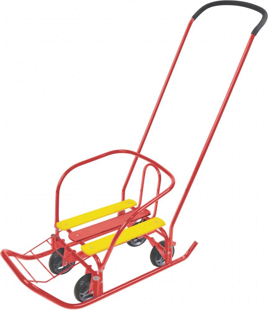 Санки с ручкой-толкателем для катания и перевозки детейПреимущества- укороченная база - продольная рейка- съемная спинка- ступенчатая подножка- 2 положения ручки- пластиковые вкладыши под толкатель обеспечивает надежную фиксацию ручки- грузоподъемность санок не 25 кг- цвет красныйГабаритыв разложенном виде Д без ручки х Ш по спинке х В по спинке 740х385х415ммвысота санок по сиденье 183ммсиденье ДхШ 380х252мм круглые полозья 20ммвысота с ручкой 960ммв упаковке ДхШхВ 760х430х240мм