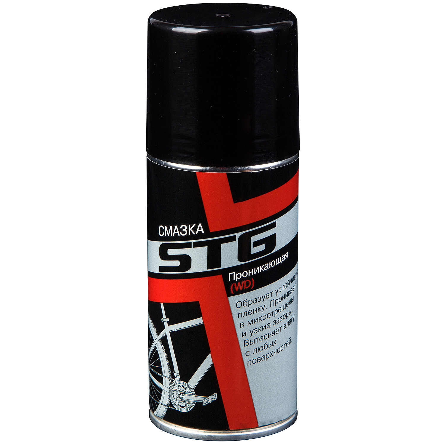 Смазка STG проникающая WD, аэрозоль. Обладает высокой проникающей способностью. Образует защитную пленку, проникая в микротрещены и труднодоступные места. Защищает от проникновения влаги. Объем 210 мл.