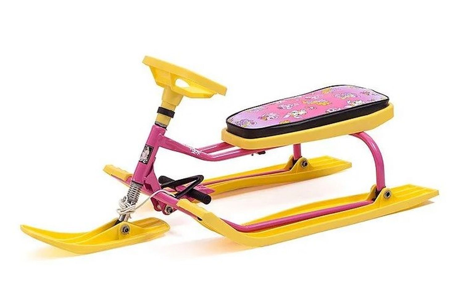 Десткий снегокат имеет прочную сварную конструкцию из стальных труб, пластиковых элементов и мягкое сиденье. Предназначен для перевозки детей по плотному снегу или льду, катанию с горок с углом наклона не более 35 градусов при температуре воздуха от +1 до -25 градусов Цельсия. Пружинный амортизатор с легкостью позволяет преодолевать ямы и кочки. Ножной тормоз дает возможность резко тормозить. Снегокат имеет большую грузоподъемность и выдерживает до 100 кг.