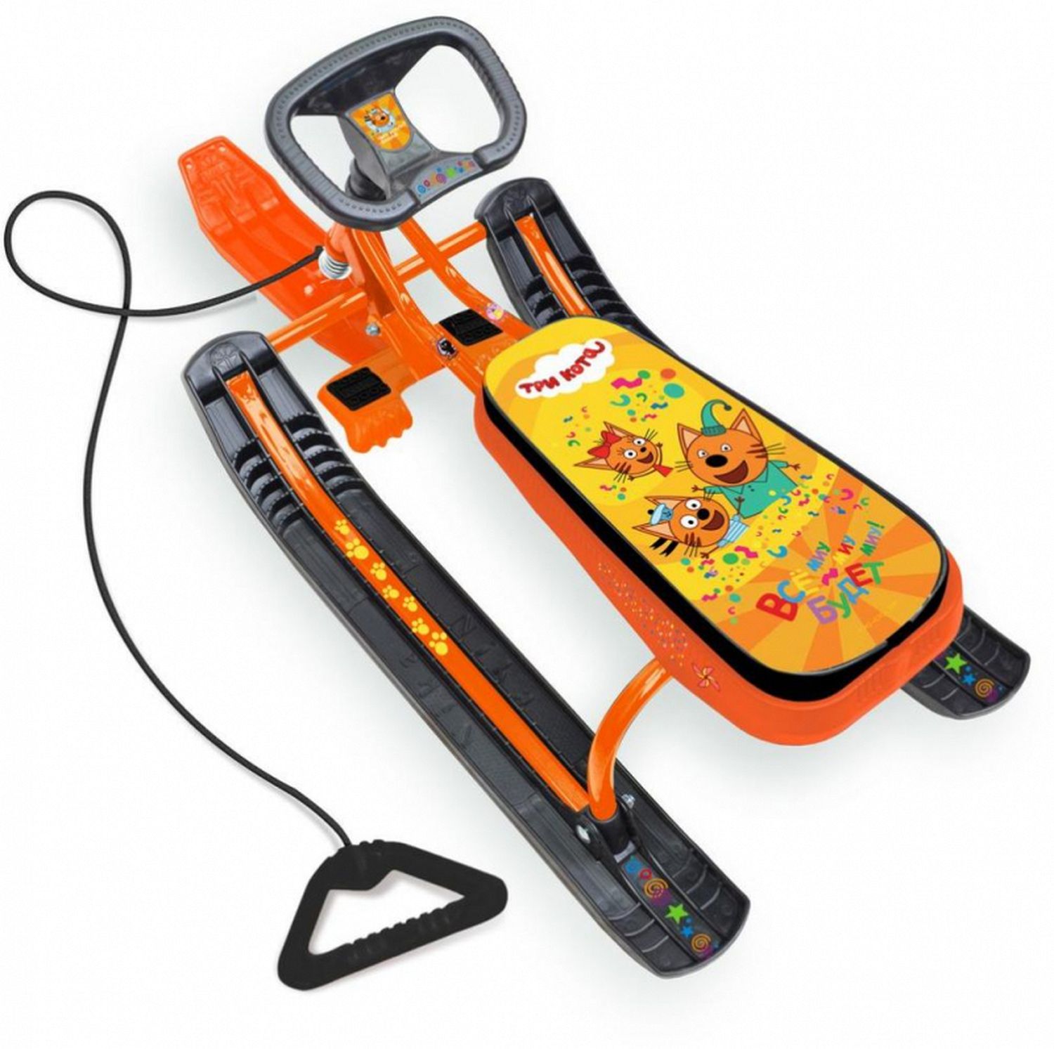 Снегокат Тимка спорт 2 три кота отличный вариант для зимних прогулок и активного отдыха! Преимущества- мягкое сиденье- буксировочный трос- усиленный тормоз эффективен даже на обледенелых поверхностях- грузоподъемность до 100 кг