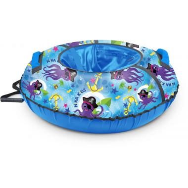Тюбинг с ярким принтом изготовлен из прочного тента, который устойчив к морозам до 28 градусов, все швы усилены капроновой лентой.